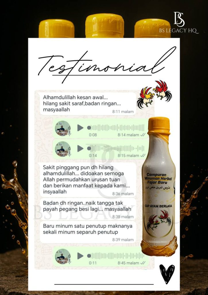 Alhamduillah Ramai Yang Dah Sihat Setelah Menggunakan Minuman Tonik Cap Ayam Berlaga Turun Temurun Sejak Tahun 1972